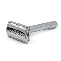 Fits all double edge blades. The "twist to open" technology makes it easier to change blades Computer designed perfect angle provides a closer, comfortable, smoother shave Material: Refined Stainless Steel, Zinc alloy, Copper, ABS Comes with 10 Derby Extra Double Edge Blades.